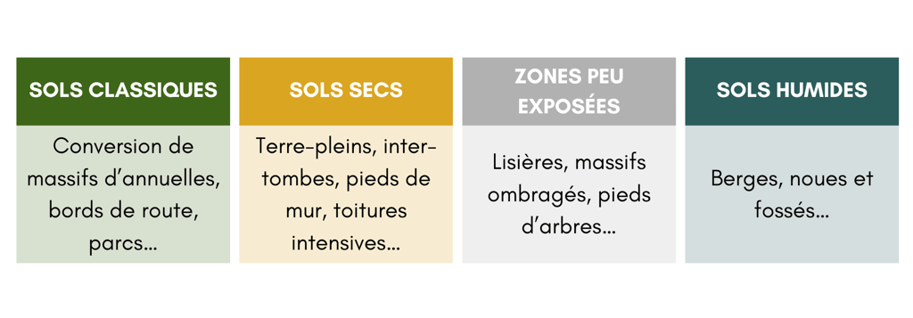 Cette approche, bien qu’elle simplifie le choix des espèces, peut ne pas tenir compte de certains paramètres propres à chaque lieu de plantation (pH du sol, exposition, etc.). N’hésitez pas à nous contacter pour échanger sur les caractéristiques de vos projets afin que nous définissions ensemble les végétaux les plus adaptés pour un aménagement durable.